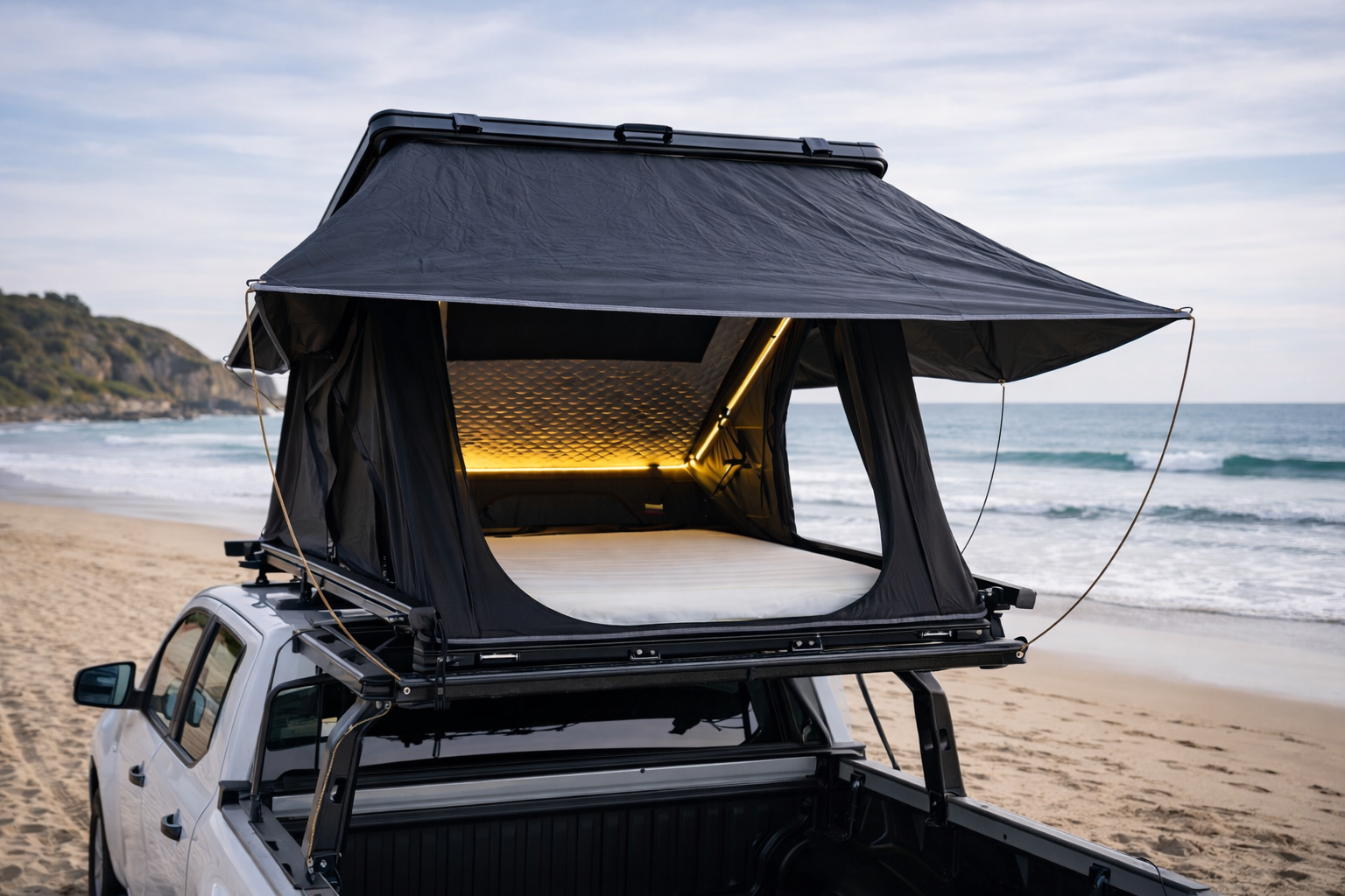 Most rooftop tents charge extra for insulation, lighting, power access, and comfort upgrades.
